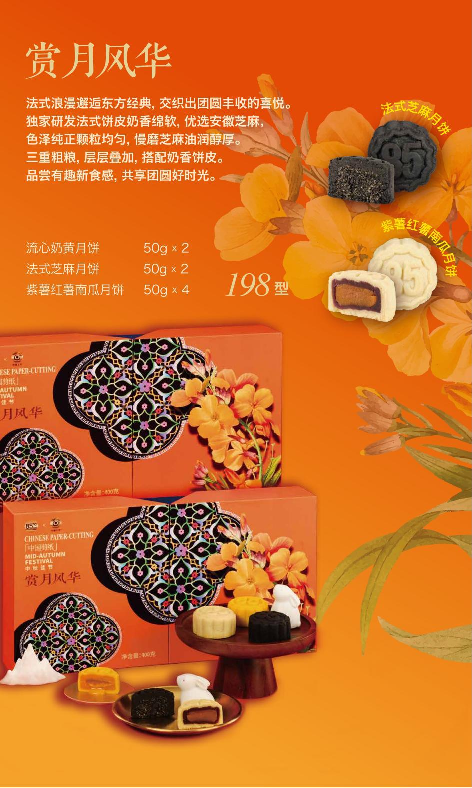 介紹:流心奶黃月餅50g*2 紫薯紅薯南瓜月餅50g*4 法式芝麻月餅50g*2